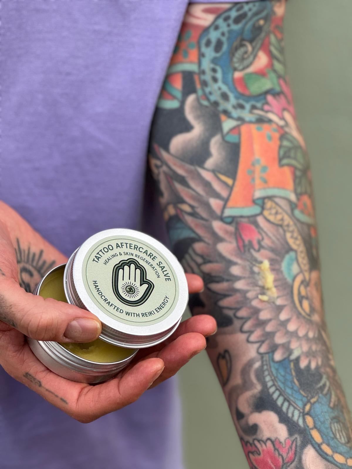 It exists to offer care that reflects the weight of the decision to get tattooed. Care that is intentional, grounded, and respectful of the story being worn. Each batch is prepared slowly and attentively, including energetic intention through reiki — not as a belief to adopt, but as part of how the work is approached.